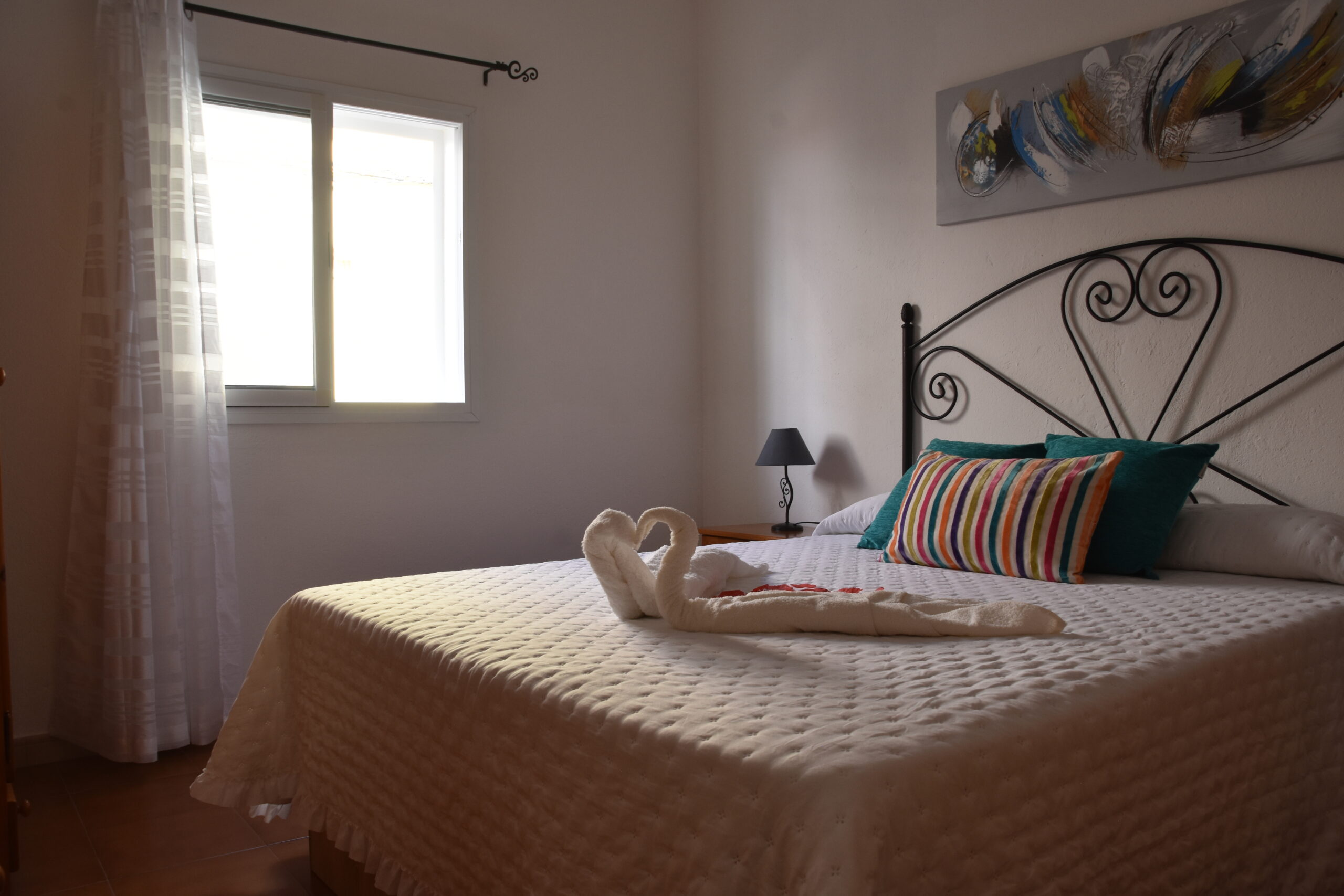 cama de matrimonio, perfecta para parejas que buscan confort y privacidad. El baño está